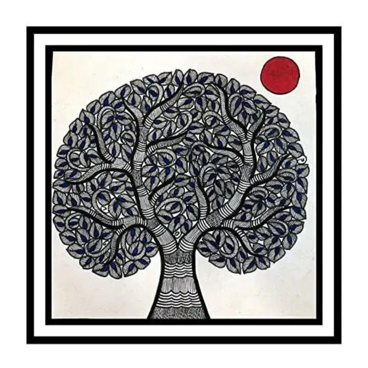 Framed Madhubani Painting Tree of Life for Home Wall Art Decoration