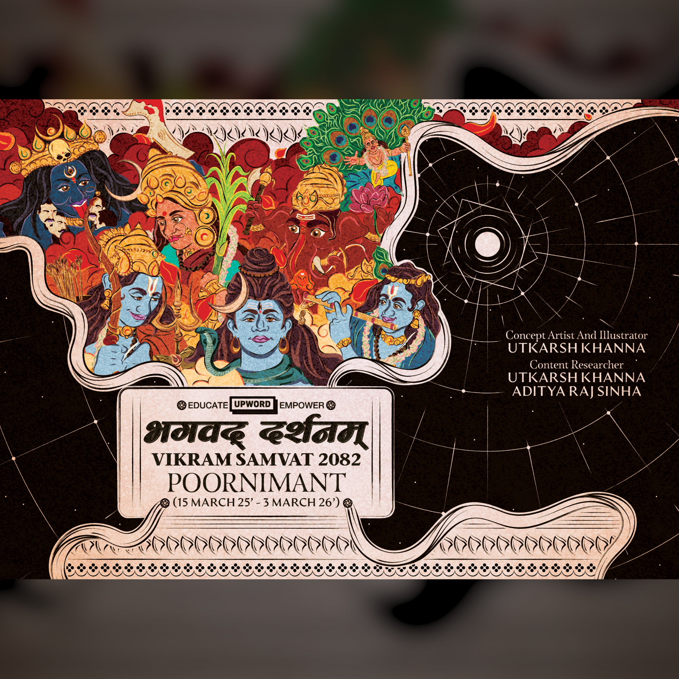 Introducing our exclusive Hindu Table Calendar for Samvat 2082, inspired by Bhagwat Darshanam. Each page beautifully captures divine encounters between sages and deities, from Adi Shankaracharya’s meeting with Chandala Shiva to Meerabai’s heartfelt union with Shri Krishna. Printed on premium 300 gsm paper with stunning original artwork, this 14-page calendar adds a touch of devotion, color, and spirituality to your home or workspace.