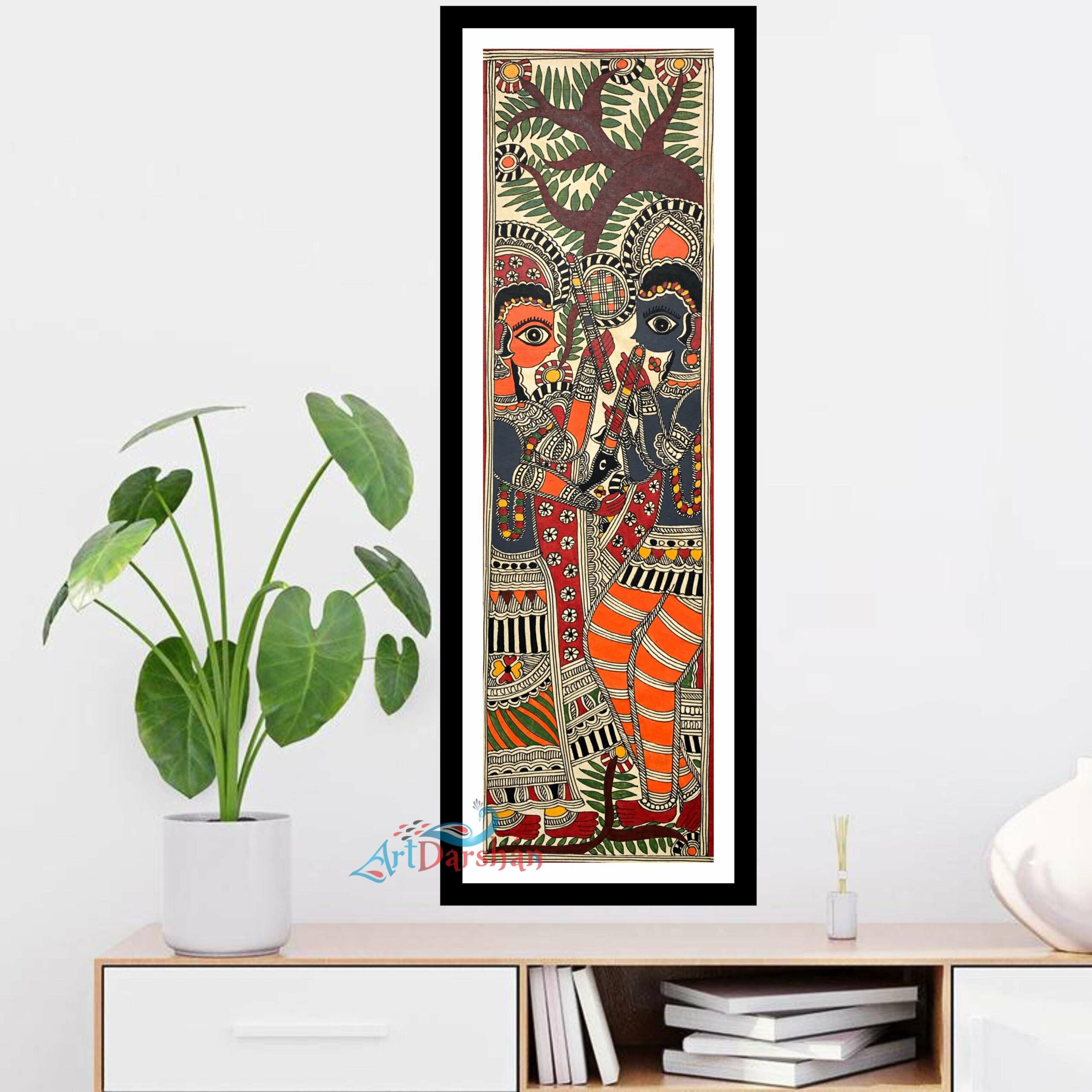 Madhubani Handmade Painting of Radha Krishna for Home Wall art Decoration