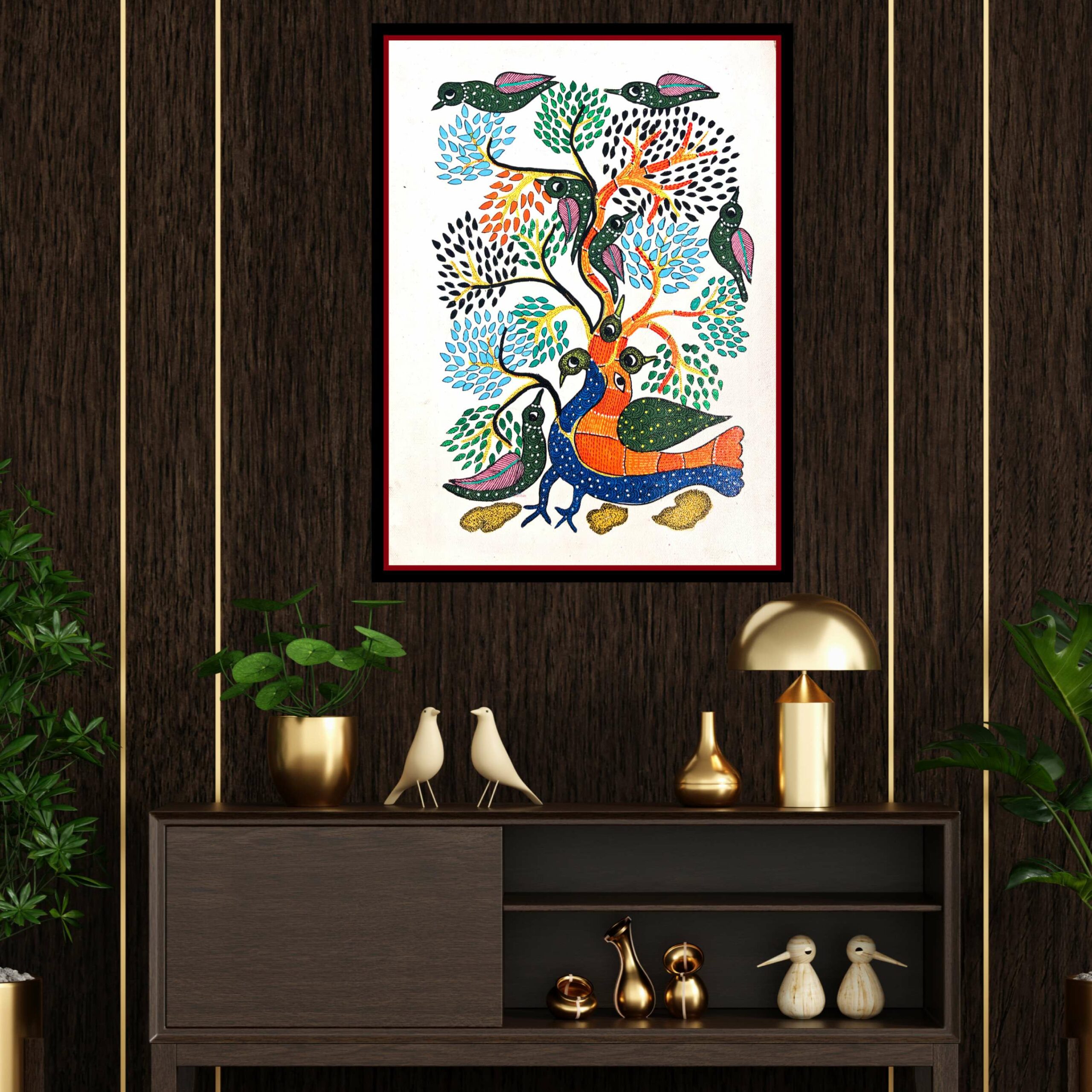 Traditional Gond Art Painting of Peacock and Tree for Home & Office Wall Art Decor | Art Darshan